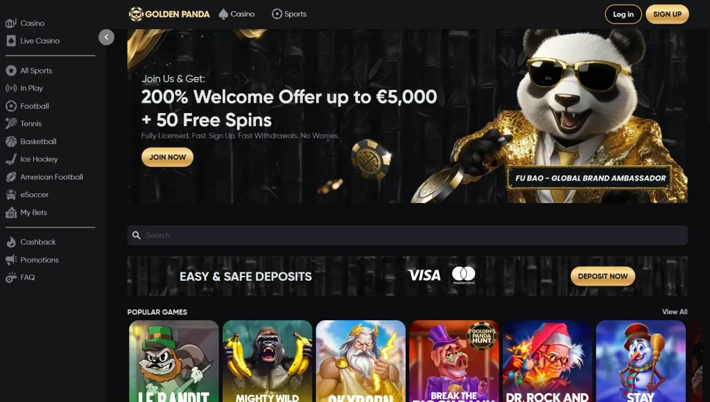 Golden Panda s’impose comme l’un des casinos les plus généreux du moment grâce à son incroyable bonus de bienvenue pouvant atteindre 7 500 €, spécialement optimisé pour les amateurs de cryptomonnaies. Lancé en 2024, ce site moderne séduit par son design coloré et panda-friendly, sa compatibilité parfaite avec les appareils mobiles et son vaste catalogue de jeux. Vous y trouverez des milliers de machines à sous thématiques, des jackpots progressifs, des jeux de table classiques et même une section paris sportifs.
